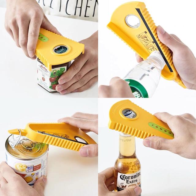 饮料、罐头、果酱⋯⋯有时候你和享受美食之间的距离,就是“一个瓶盖”。而这款多功能开罐器,拧开从3厘米到7厘米的瓶盖都不在话下,内置的防滑橡胶条不易打滑,ABS树脂材质厚实坚固耐用。另一头的三角尖头还可以开启各类拉环罐头,中间还有开啤酒的开瓶器。很多用过的人都切实get了“给力”的感觉。