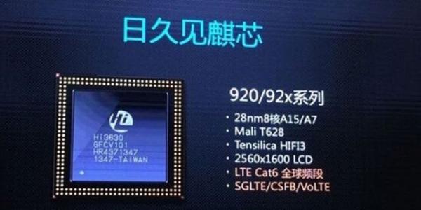 2014年,是华为高端的转折之年,麒麟920发布,海思k3v2也终于从华为的手机中退役。麒麟920是华为第一款集成基带的处理平台,支持cat.6网络,最高300mbps的峰值速率,而当时高通的801仅支持cat.6网络,150mbs的峰值速率,麒麟920可以说是华为第一次赶上了高通芯片的步伐。