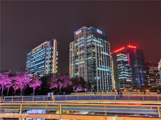 另外值得一提的是魅族17 Pro关于超广角的优化思路,此次配备的3200万像素超广角镜头拥有129°可视角度(等效焦距15mm),同样支持夜景模式。拍摄夜晚的楼宇和车流等大场景时,定制广角度以及高像素对于超广角的意义才能真正显露出来。其支持像素四合一,保证夜景有足够的像素量支持成像。